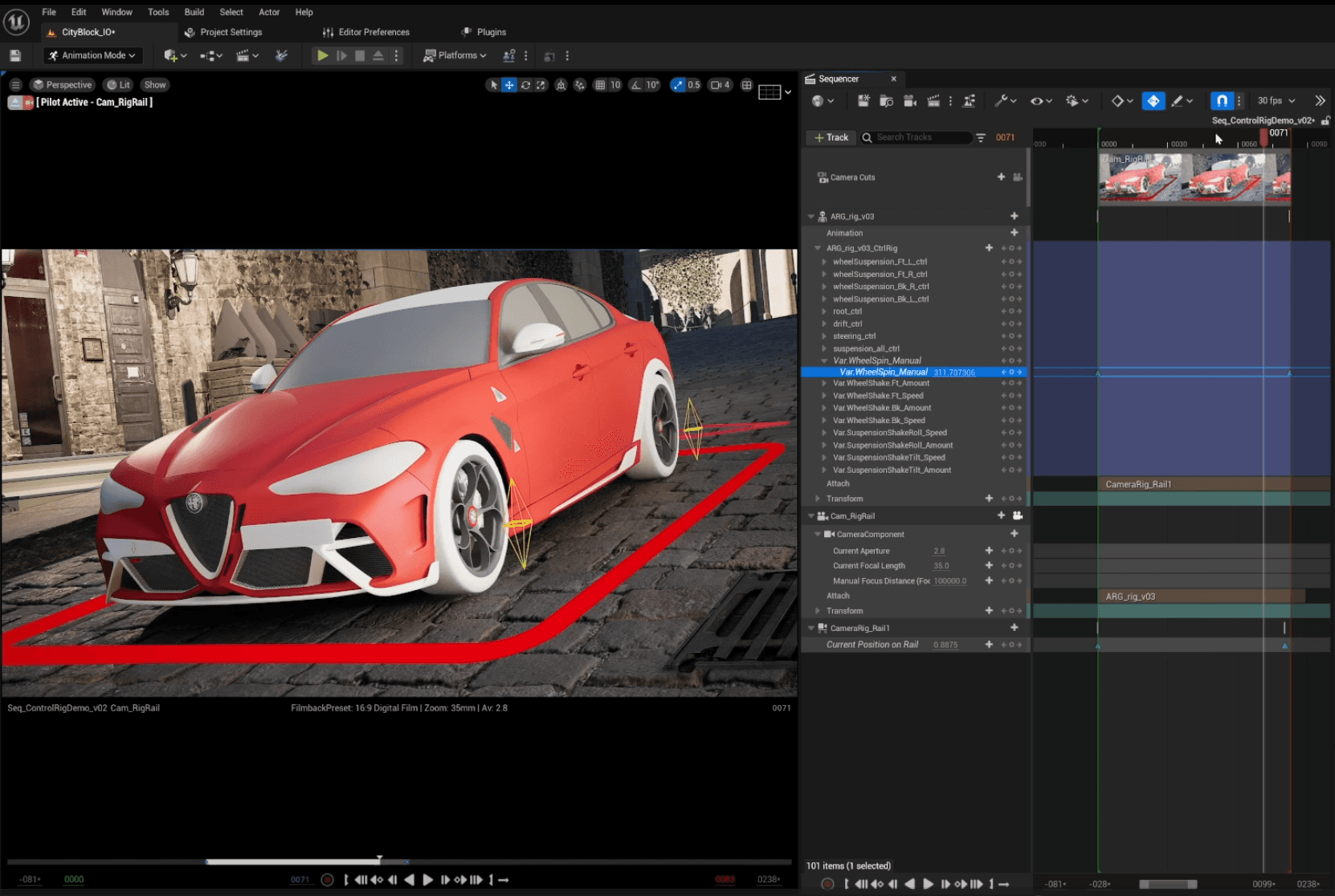 Artists like Post Processed helped to generate both amazing content and training materials for this type of automotive work, and eventually Amir from Mad Goat Studio built his own version of a rig that has since surpassed my own in every way. Known as the Cinematic Car Rig for Unreal Engine, this thing is absolutely amazing, and worth every penny. If you're interested in animating cars, start there!