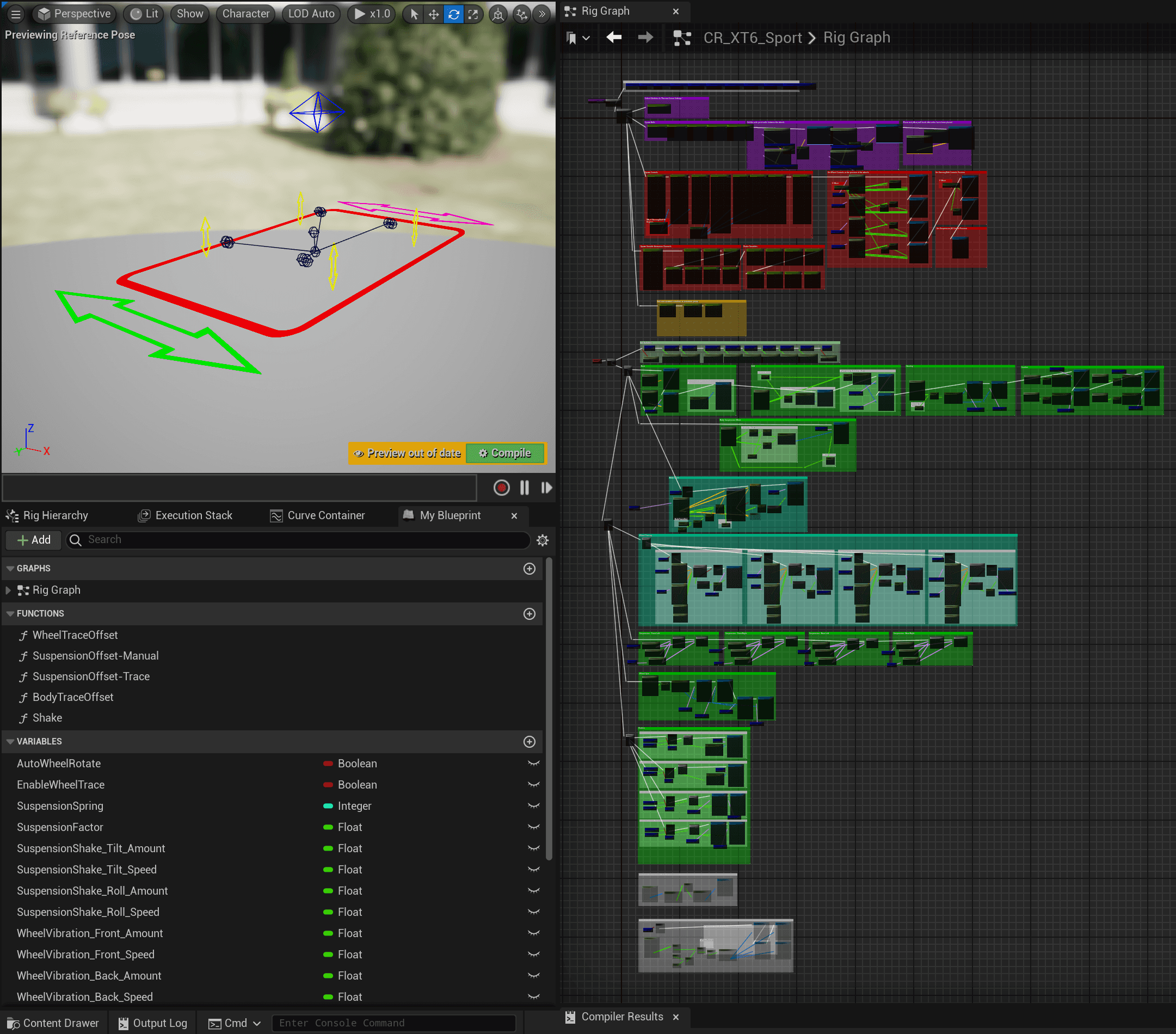 In parallel with Miles, I continued developing the Control Rig, and eventually it became fully procedural out of pipeline necessity. For the Impossible Objects Cadillac campaign, I adjusted the rig so that it spawned all the necessary joints & offsets, meaning that as long as a skeletal naming convention was followed in the initial prep of the vehicle geometry, adding the Control Rig in Unreal was as simple as a copy/paste.
